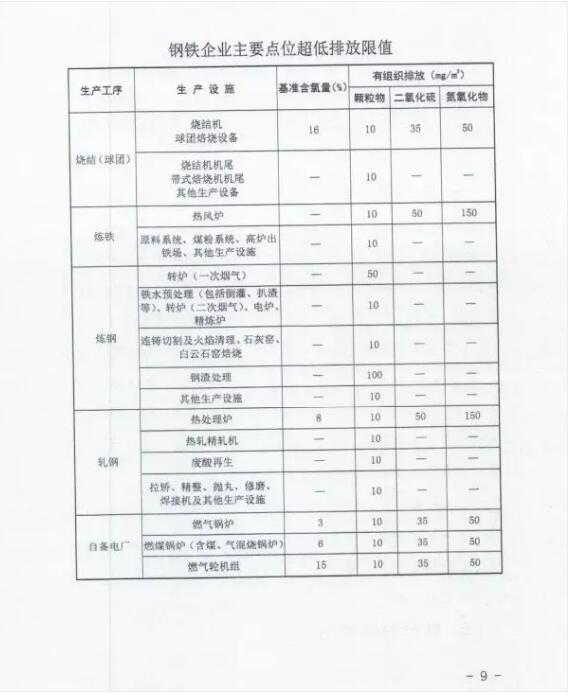 2018年10月底前,全市所有鋼鐵企業(yè)(含獨立球團、高爐鑄造企業(yè),下同)全部達到超低排放水平(限值參照驗收標準,通過168小時運行且第三方監(jiān)測達標,95%以上小時均值排放達標),并完成濕煙氣脫白治理,凡達不到標準的實施停產(chǎn)整治。