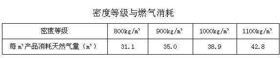 此時,每立方米800kg密度等級的產(chǎn)品,天然氣消耗量約31.1m3。而每立方米1100kg密度等級的產(chǎn)品,天然氣消耗量約42.8m3。每立方米密度相差300kg,燃?xì)庀南嗖?1.7m³。